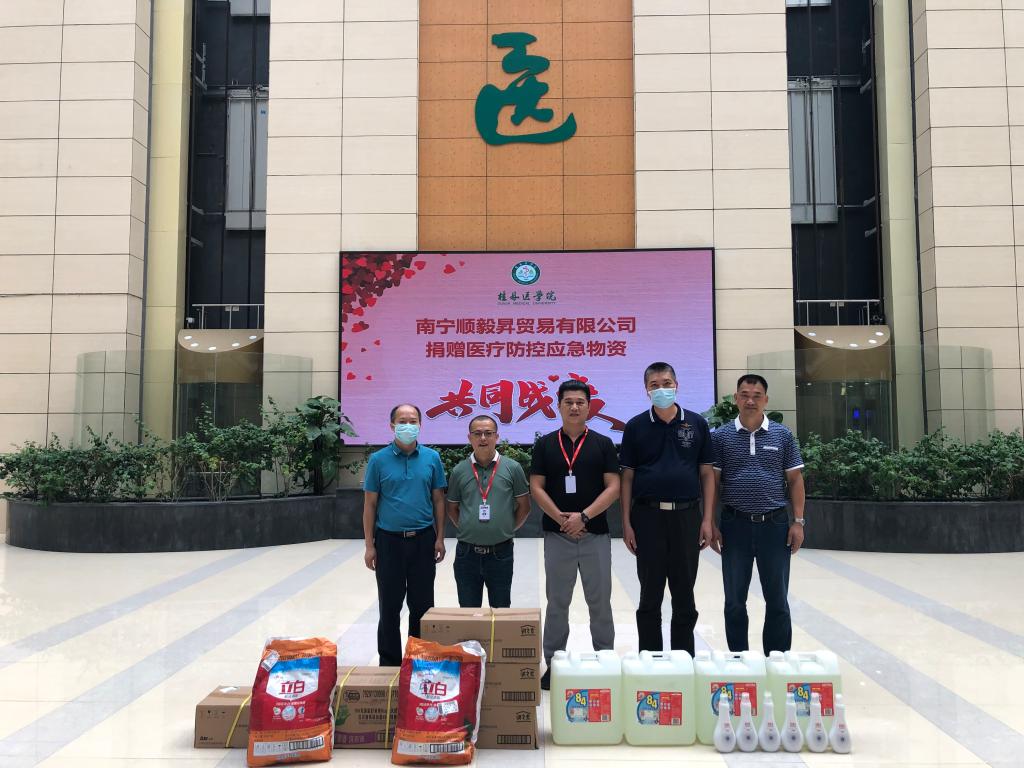 6月3日,南宁顺毅昇贸易有限公司为我校捐赠了一批防控物资,校长助理覃克强及后勤管理处、保卫处相关负责人共同参加了捐赠仪式。