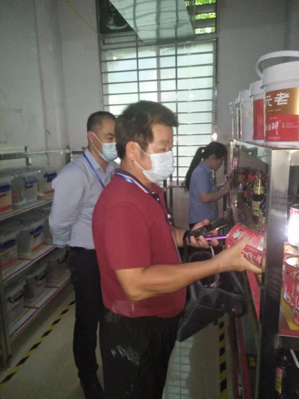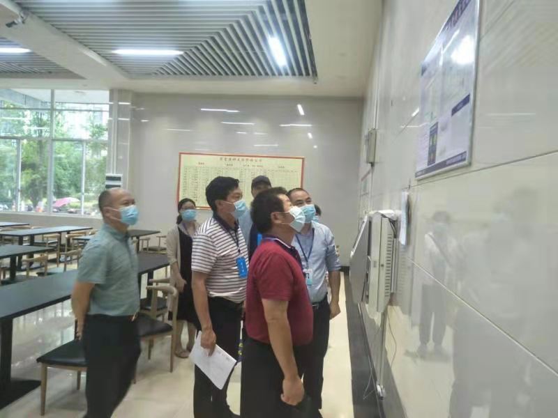 在校长助理覃克强及后勤管理处负责人陪同下,专家组进入食堂粗加间、烹饪间、原材料仓库等功能间进行现场检查。专家组检查了从业人员健康证、原材料采购验收台账、食堂菜品留样管理等工作,详细查看相关记录。