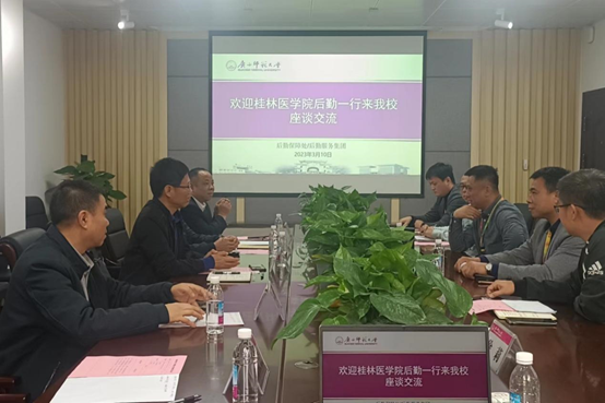 座谈会上,广西师范大学后勤服务集团副总经理蔡章福介绍餐饮服务中心的管理、食堂运营模式、成本核算和利润控制等基本情况,分享了管理经验;后勤集团总经理邓海军对我们的到来表示热烈欢迎,并希望我们两校多多交流,相互学习。