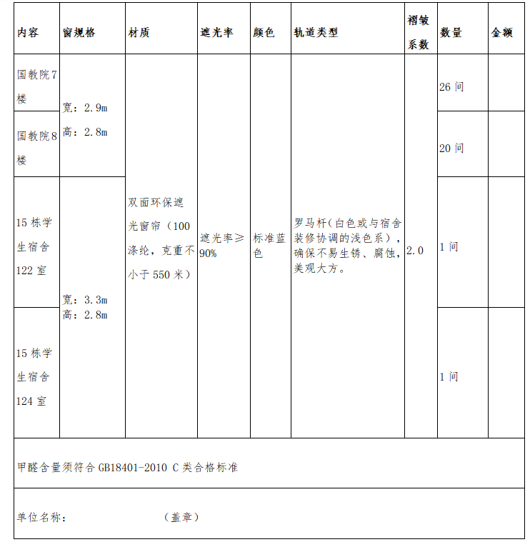 (一)项目名称:临桂校区学生宿舍窗帘安装项目
