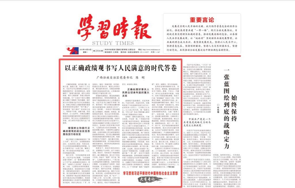 《学习时报》头版刊发陈刚署名文章:以正确政绩观书写人民满意的时代答卷2025-10-29