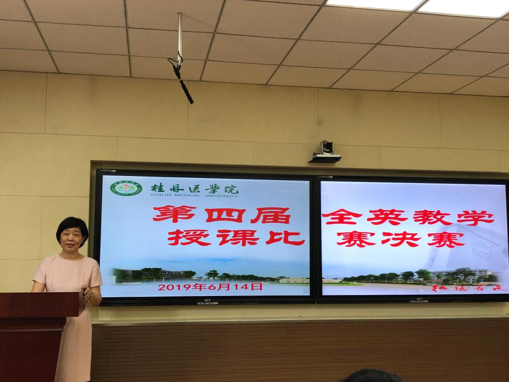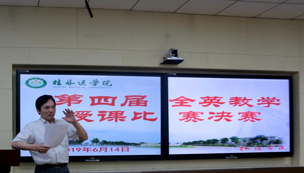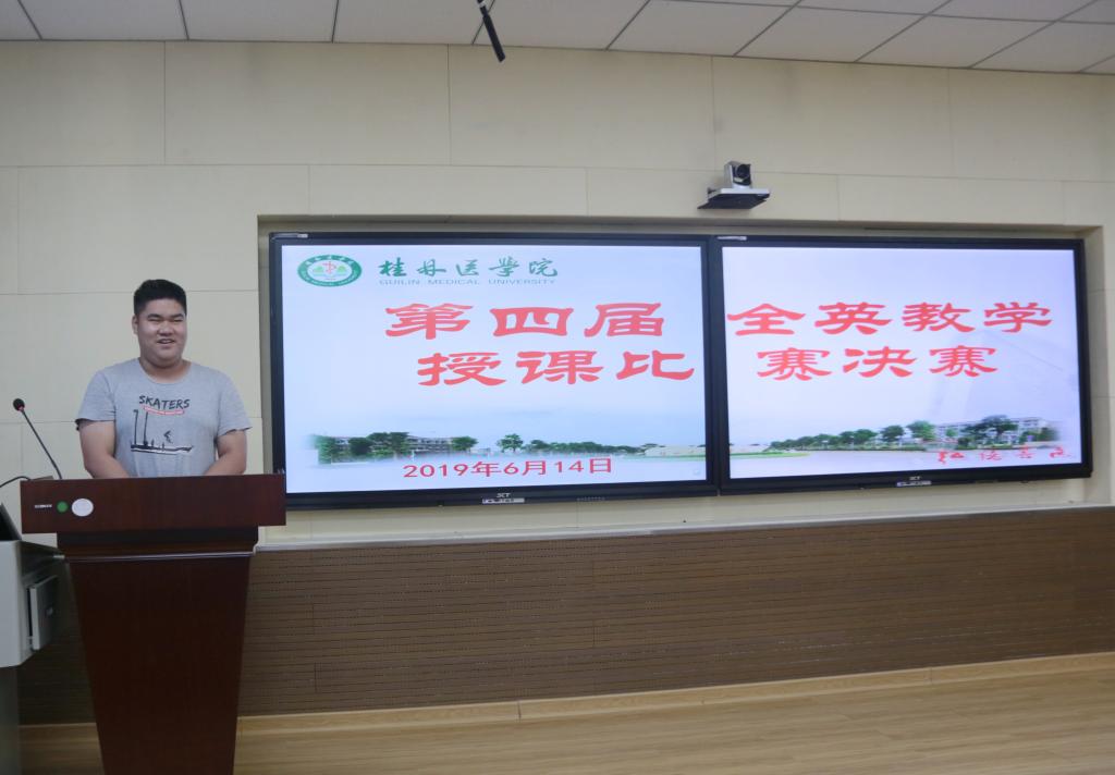 为提高我校教师专业课程外语授课能力,促进留学生教育师资队伍建设。6月14日,2019年度桂林医学院第四届医学专业课程全英教学授课比赛决赛在临桂校区明德楼举行。经二级学院初赛,共推荐21名教师参加决赛。决赛评委由专家评委和学生评委组成。各二级学院领导及教师观摩了比赛。