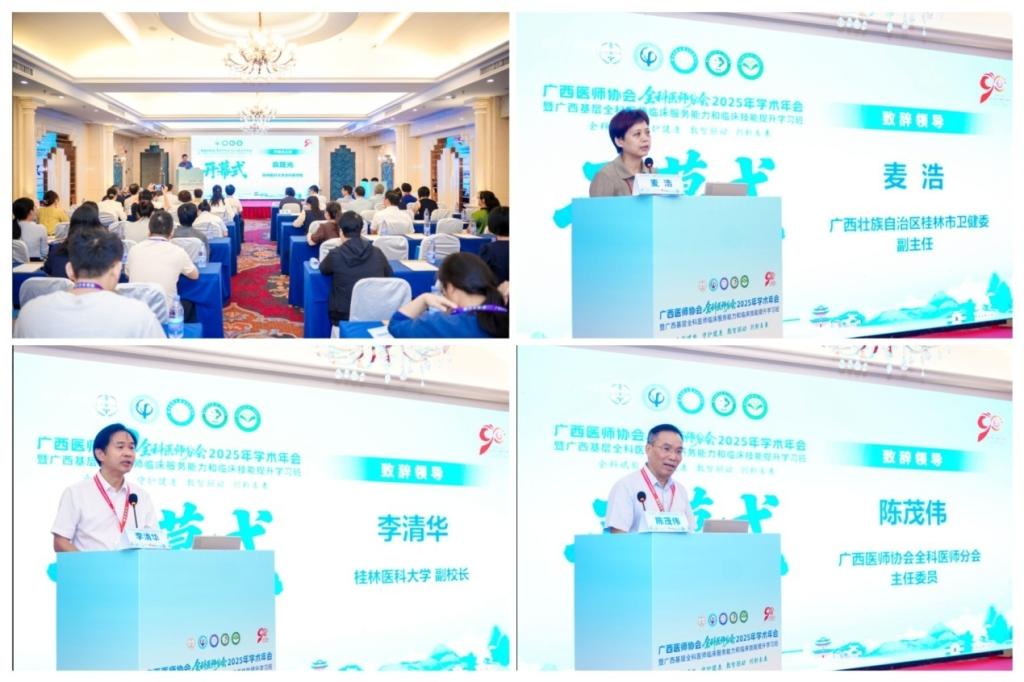 9月26-27日,由广西医师协会主办,桂林医科大学全科医学院、第二附属医院和第一附属医院携手广西医师协会全科医师分会和广西医科大学全科医学院共同承办的“广西医师协会全科医师分会2025年学术年会暨广西基层全科医师临床服务能力和临床技能提升学习班”在桂林市举行,本次大会作为桂林医科大学建校90周年系列学术活动之一,邀请了区内外众多知名专家学者及全科医师近200余人,共襄学术盛举,齐谋全科医学发展大计。