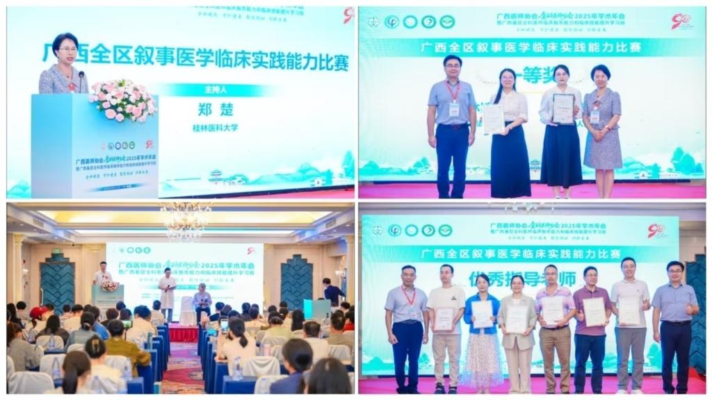 一场充满温度与深度“全心全医 医学叙事”为主题的广西全区叙事医学临床实践能力比赛点亮了年会之夜。来自全区各地市的参赛队伍通过情景剧、案例解析、反思演讲等丰富形式,生动演绎了全科医师运用叙事医学倾听患者、理解疾苦、改善沟通、升华职业价值的实践过程。