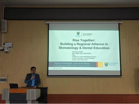 会上,Firdaus Hariri教授、Lim Ghee Seong副教授、Pek Yee Tang副教授与我院麦华明教授、邱峰副教授分别就“Rise Together:Building a Regional Alliance inStomatology & Dental Education”“Low-Level Laser Therapy (LLLT): A Conservative Approach to TMD Pain Management” “Oral and gut microbiota in schizophrenia”“The application of digital technology in oral and maxillofacial surgery”“Digitalized, standardized,and personalized orthognathicand orthodontic treatment process” 等前沿课题进行了分享。