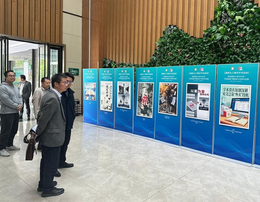 为充分展示大赛成果,科学技术研究院于11月6日至22日在临桂校区科学实验中心一楼大厅对优秀获奖作品进行了集中展览。展览期间,吸引了大量师生驻足观看,成为一堂生动的、可视化的科研诚信教育公开课,引发了观展者的广泛共鸣与深入思考。