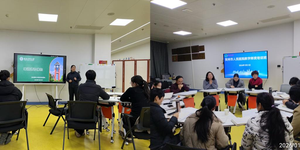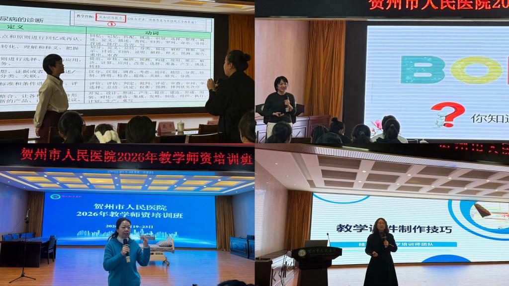 应贺州市人民医院(桂林医科大学附属贺州医院)邀请,我校教师教学培训团队于1月19日-23日赴附属贺州医院开展临床教师教学能力提升培训。本次培训共有近百名临床教师参与。
