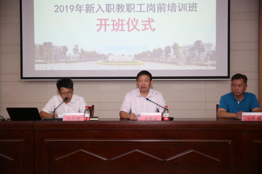 9月21日上午,在开班仪式上,齐俊斌副书记代表学校党委和行政对新入职教职工表示热烈欢迎并提出希望和要求。要求新入职教职工牢记自己的职责使命,以积极进取的心态、饱满的工作热情投入到教书育人的伟大事业中去,引导学生求真学问、练真本领,倾力实现教育报国、教育强国梦,在传道授业解惑中实现人生价值。