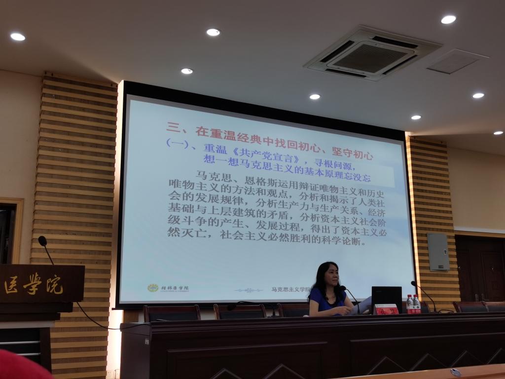 10月10日下午,学校“不忘初心、牢记使命”主题教育“读原著 悟原理”系列专题报告会第二讲在东城校区弘德楼一楼会议室开讲。本讲由马克思主义学院副院长孔慧主讲,护理学院、口腔医学院与医学检验学院师生党员100余人参加。报告会由护理学院党委书记李寿芬主持。