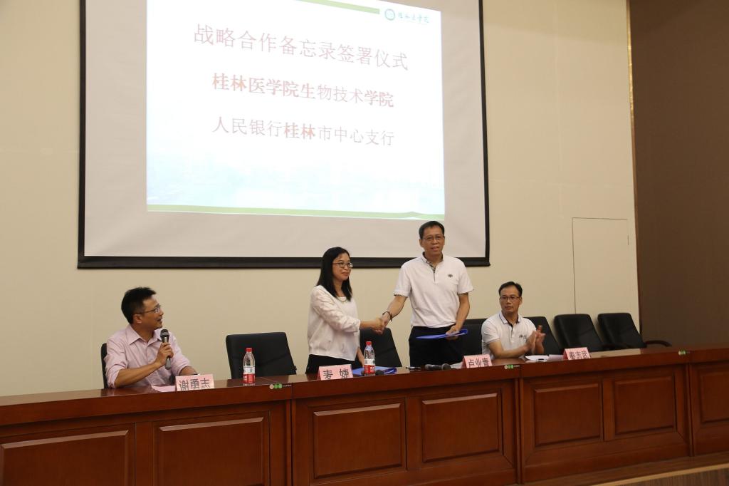 诚信是做人的根本,是公民的基本道德规范,作为人才培养的主阵地,高校应注重弘扬和培育大学生的诚信意识、诚信品质,推动社会形成履约践诺、诚实守信的良好氛围。10月10日下午,桂林医学院生物技术学院与中国人民银行桂林市中心支行签署战略合作备忘录,开展诚信文化进校园活动。活动在国际教育学院报告厅举行。中国人民银行桂林市中心支行工委会主任卢业青、征信管理科副科长秦志武、生物技术学院党总支书记麦婕、副书记谢勇志出席仪式。仪式由谢勇志主持。