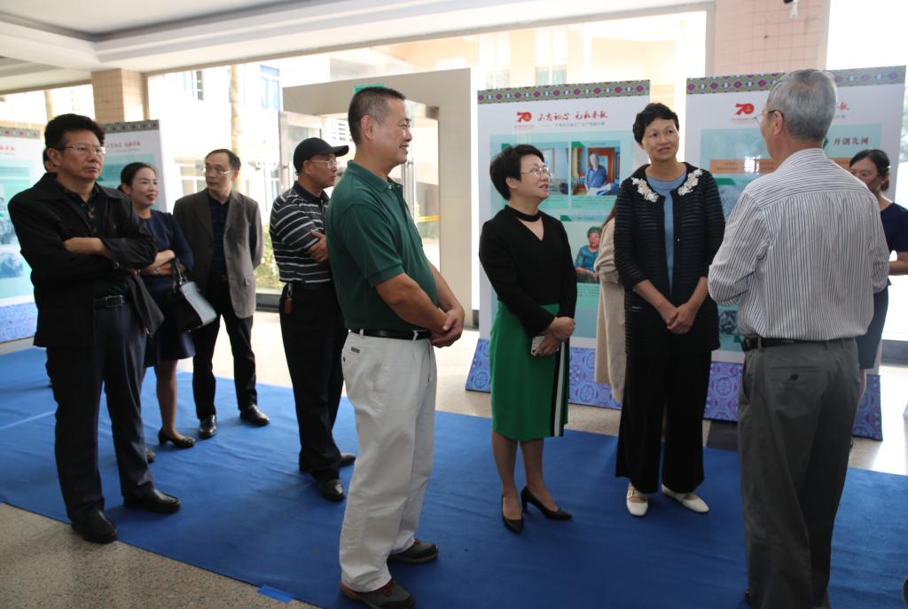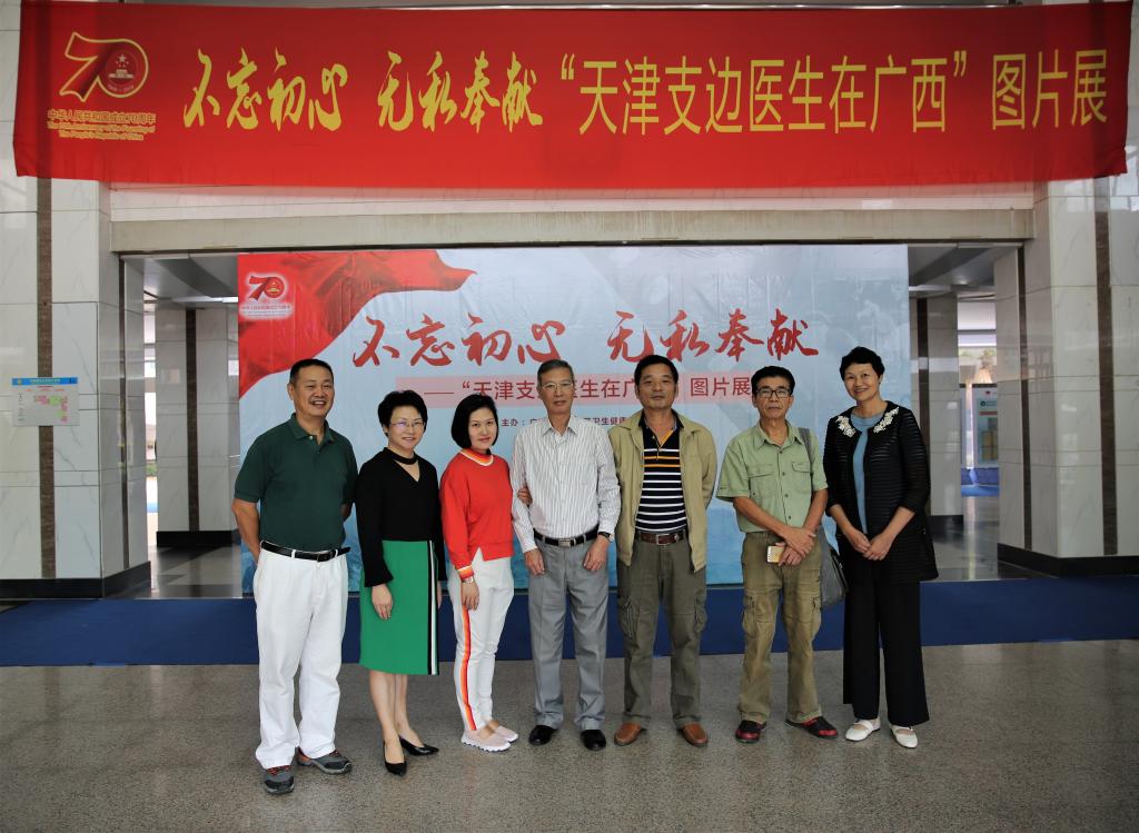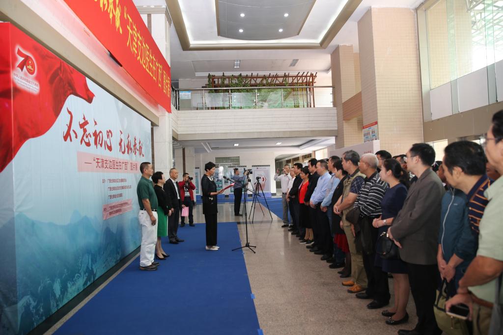 为深入学习贯彻习近平总书记“不忘初心,牢记使命”主题教育精神,10月15日,“不忘初心、无私奉献——天津支边医生在广西”图片(桂林)展在我校东城校区科教楼一楼大厅开展。学校副校长辛懋,自治区卫生健康委机关党委专职副书记陈彦,桂林市卫生健康委党组书记王芳,天津医生家属代表,桂林市卫生健康委、各县(市、区)卫生健康局、市直及驻桂林医疗机构有关领导干部,以及学校师生员工代表近200名参加开展仪式。