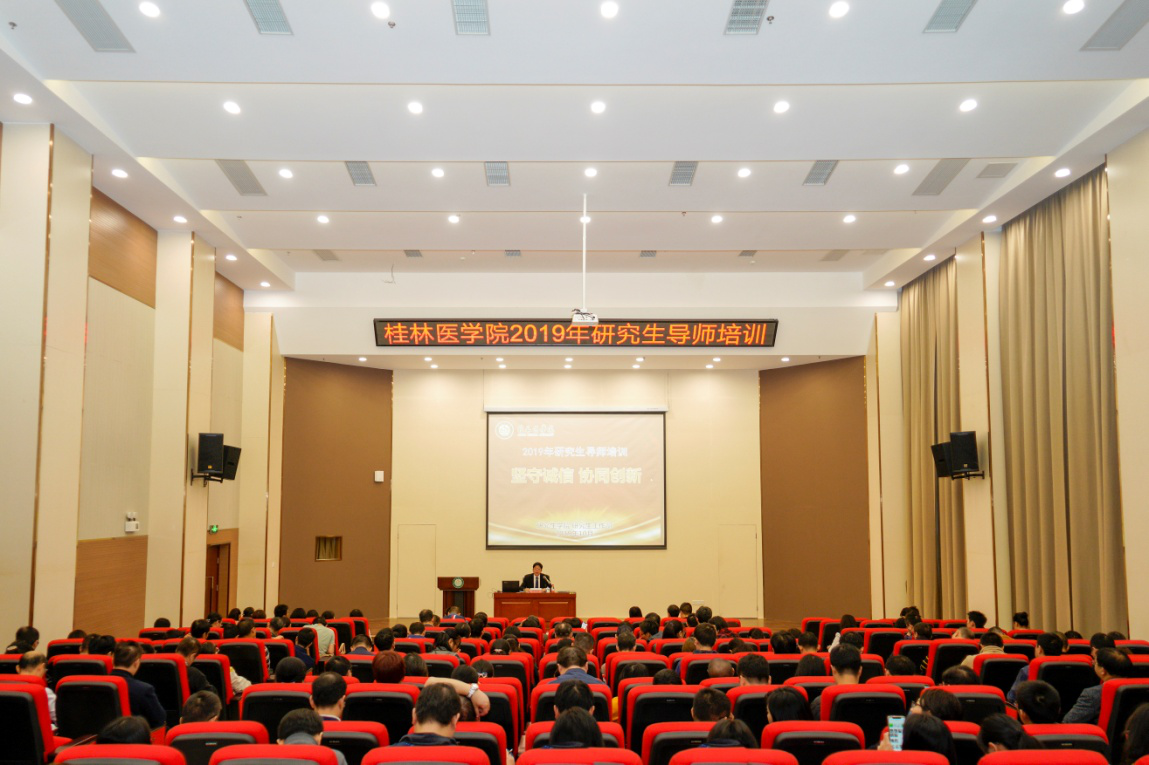 为全面贯彻党的教育方针,落实立德树人根本任务,加强导师队伍建设,充分发挥研究生导师对研究生思想品德、科学伦理、学术诚信的示范和教育作用,我校于10月25日在临桂校区国际交流中心一楼报告厅开展2019年研究生导师培训班。校党委书记黄照权教授、复旦大学放射医学研究所所长张农教授、广西师范大学教育学部党委书记陈闻教授受邀作专题报告。来自各培养单位的研究生导师及研究生学院、研究生工作部全体工作人员参加了培训,培训会由研究生学院院长简洁主持。