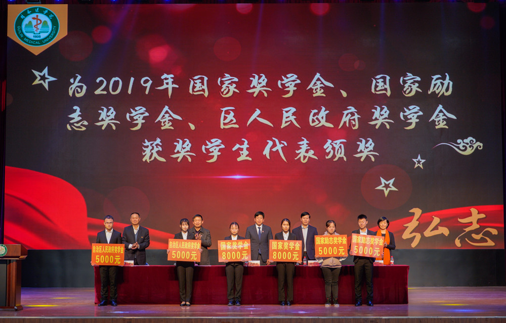 大会表彰荣获2019年桂林医学院优秀学子、国家奖学金、国家励志奖学金、区人民政府奖学金、特等奖学金、新生奖学金、逐梦奖学金等荣誉的本专科生,和荣获2019年国家奖学金、学业奖学金、校长奖学金、新生奖学金、学术之星等荣誉的研究生。
