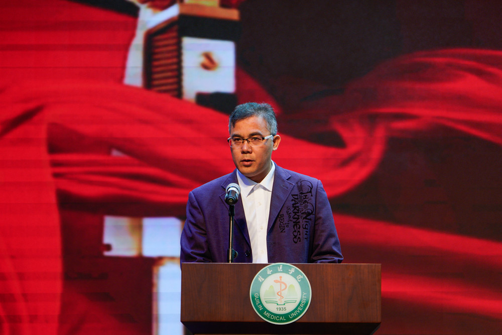 12月13日下午,桂林医学院2019年弘志表彰大会暨大学生班级导师、班主任聘任仪式在大学生活动中心召开。校党委书记黄照权,院长张志勇,副书记齐俊斌,副院长孙莉、辛懋出席会议。会议由校党委副书记齐俊斌主持。