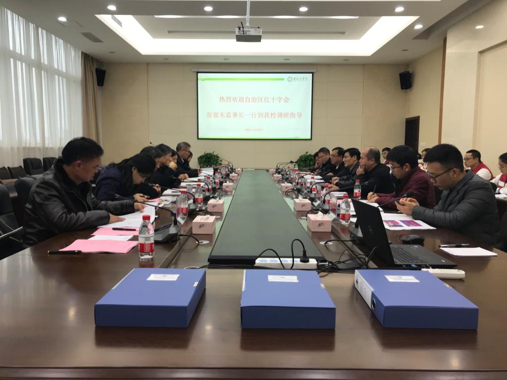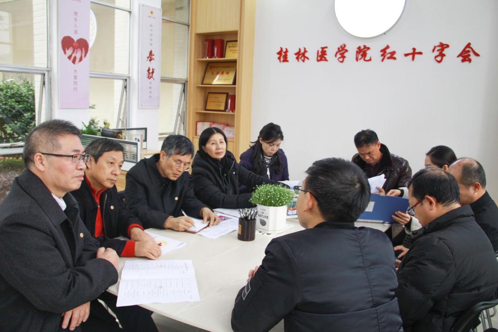 12月25日下午,广西自治区政协农业和农村委员会副主任、自治区红十字会监事长张宣东一行到我校开展红十字工作调研。校党委副书记王赣华,院长助理、桂林医学院红十字会副会长覃克强和学工处、后勤处、财务处、校团委等有关部门负责人及红十字会志愿者代表参加了此次调研会议。