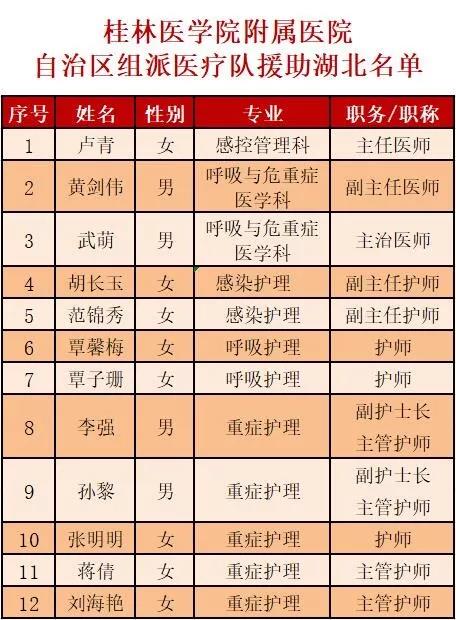 1月27日,作为桂林首批驰援武汉医疗队单位,医院12名医疗队员集结出发,于当天晚上加入广西首批援鄂抗击疫情医疗队,并一起搭机于晚上11时许平安抵达武汉黄陂区。