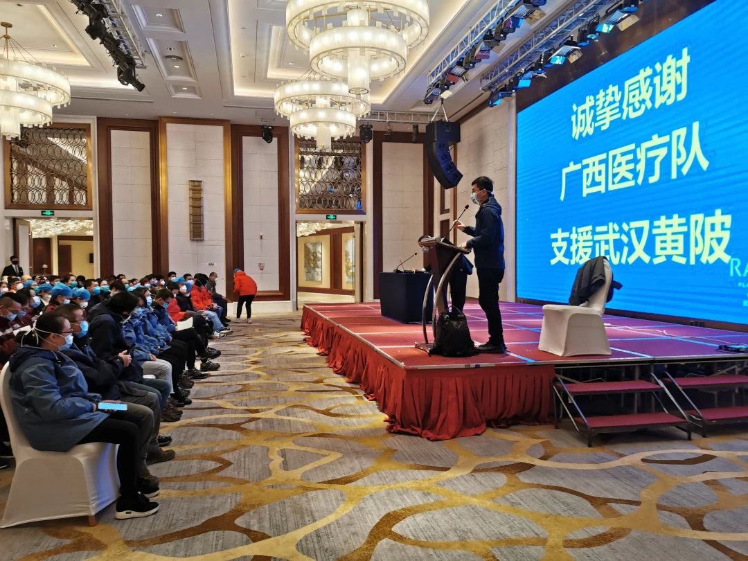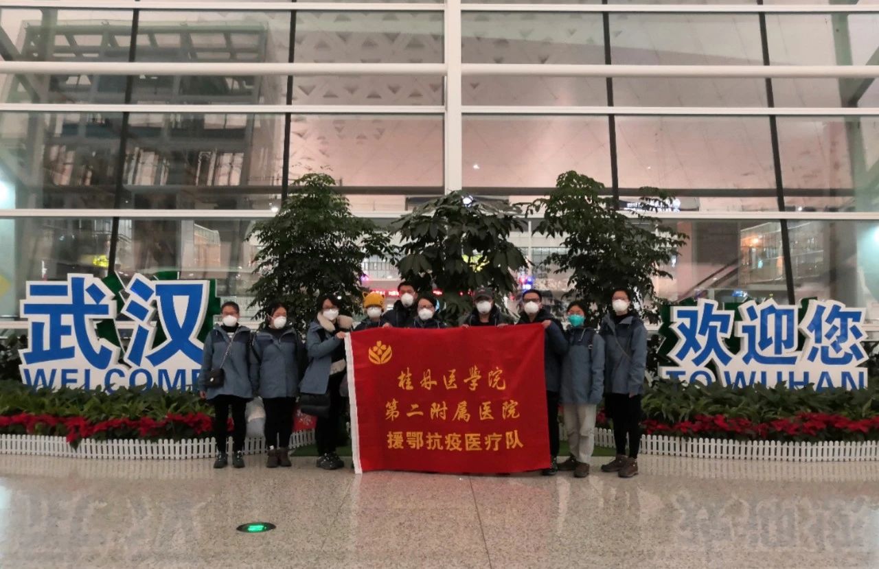 1月27日,第二附属医院10名医护人员加入广西首批援鄂抗疫医疗队出征,于当晚23点抵达武汉,入住黄陂区。从27日至今,医疗队已在疫区一线工作7天。