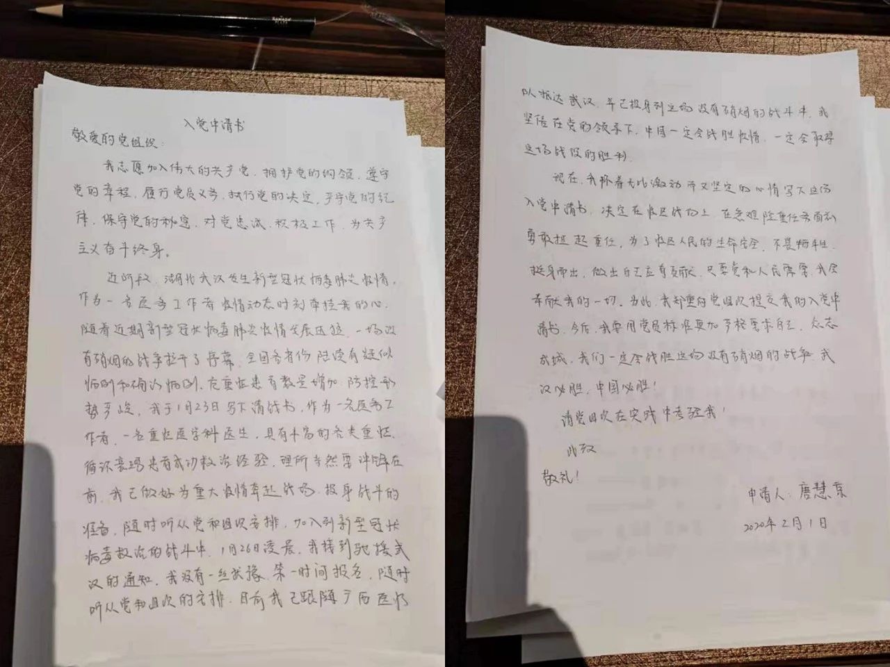医疗队员唐慧京的入党申请书