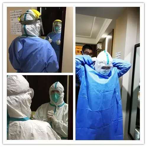 晚上做穿脱防护服培训,为第二天下临床做准备。