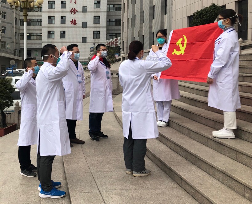 为充分发挥党组织的战斗堡垒作用和发挥党员的先锋模范作用,广西援鄂医疗队成立了临时党支部,我们五人(廖春燕、叶桂山、陈峰、李旭光、唐龙)组成一个党小组,我是党小组组长。杨新官、韦金娜、方冬玲、周俊等4名队员均已递交入党申请书,在党中央的坚强领导下,我们必将战胜疫情!