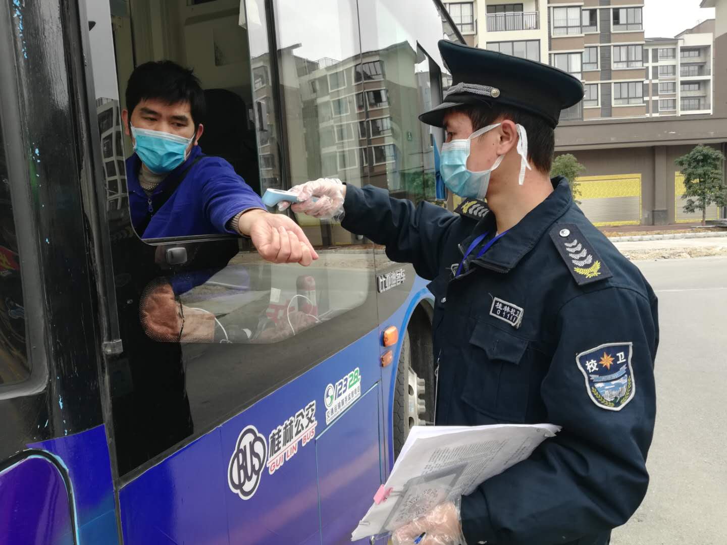 在此抗疫特殊时期,保卫处加强值班力量,两个校区实行干部双人值班。值班干部坚持每日安全检查、巡查不少于3次,严格督导各岗位值守,特别是校门防控。保卫处不仅担负着临桂校区、东城校区各各校门的防控任务,根据学校疫情防控办要求,还担负了东城教职工宿舍区、少爷塘宿舍区的防控任务,队员们每班工作8小时,冒着严寒,昼夜坚守岗位。严格加强入校人员身份甄别、有礼有节劝离无关人员,认真进行出入校门登记、体温测量等等。此外,校卫校巡逻小组、校园视频监控中心各司其职,合力保护校园安全稳定。