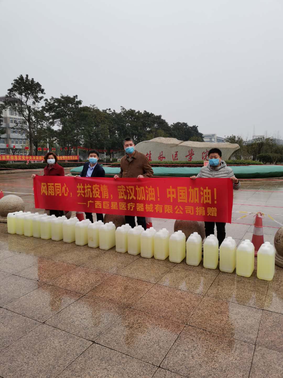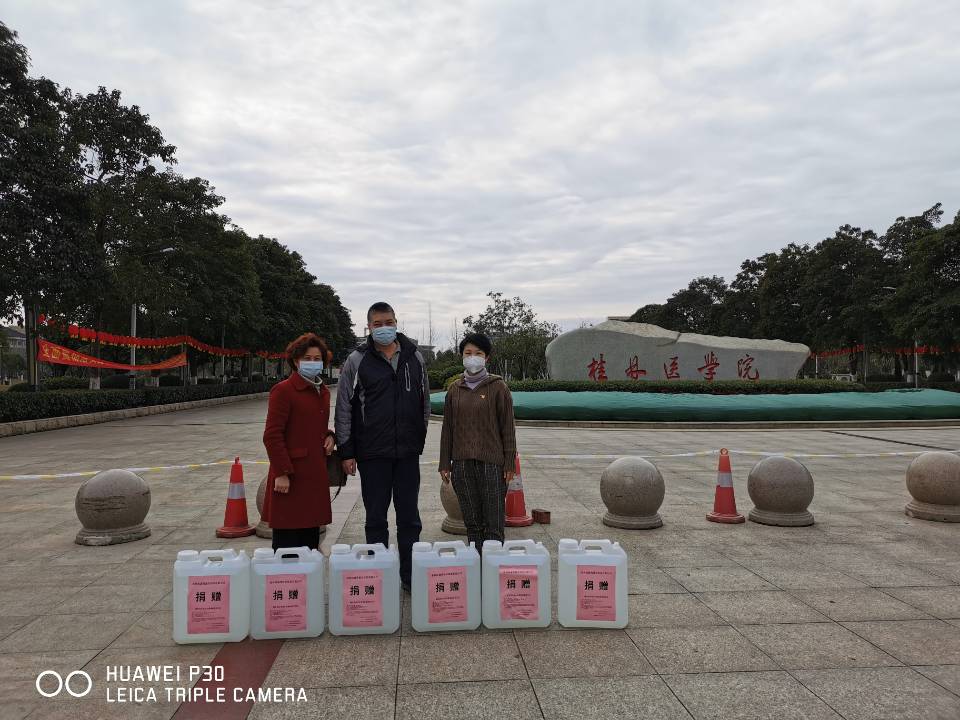 2月25日,桂林市人民政府向我校捐赠了1320公斤消毒液。