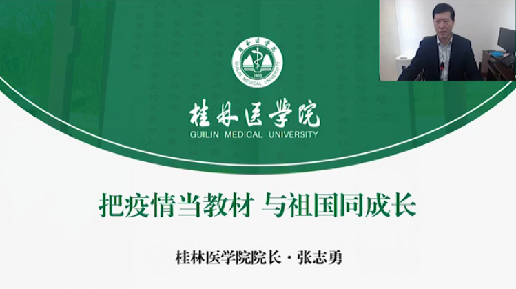张志勇从传染病防控的三大原则讲起,介绍了传染病爆发流行引起的重大公共卫生突发事件的防控知识,介绍了国家和学校采取的一系列防控措施和取得的成效,肯定了两所附属医院为桂林及湖北疫情防控做出的努力和贡献。他强调,学校始终把师生员工的身体健康放在第一位,同学们的平安与健康是学校最大的牵挂!