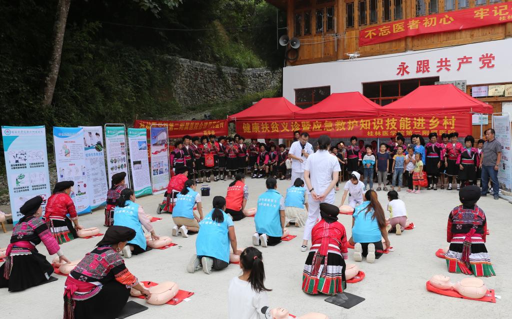 此外,医院充分发挥医疗、人才、科技等方面的优势,以医疗资源助力健康脱贫。医院多次组织专家、教授亲赴龙胜、临桂、永福、兴安、钟山、富川等地,开展送医、送药下乡到贫困村进行义诊和健康宣教活动,让村民们在家门口就能享受到优质精良的医疗服务,切实达到降低农村贫困群众医疗费用负担的目的,提高贫困人口的医疗救助保障水平。