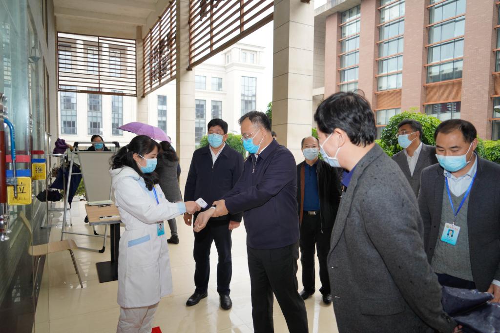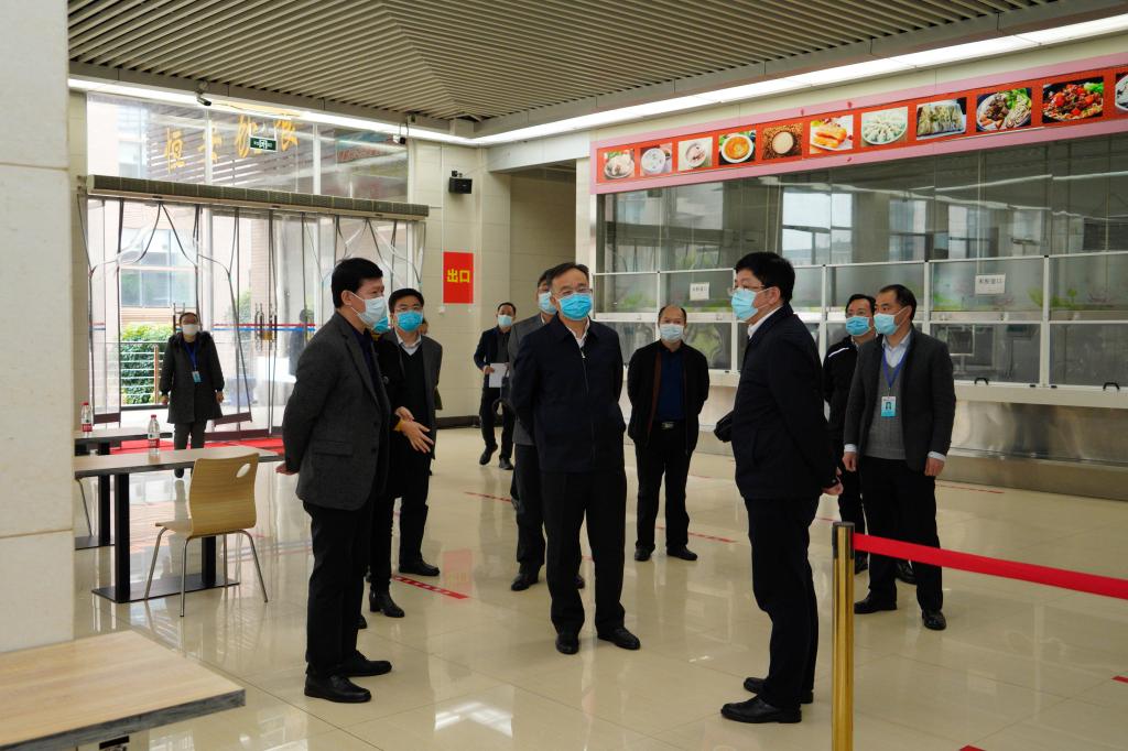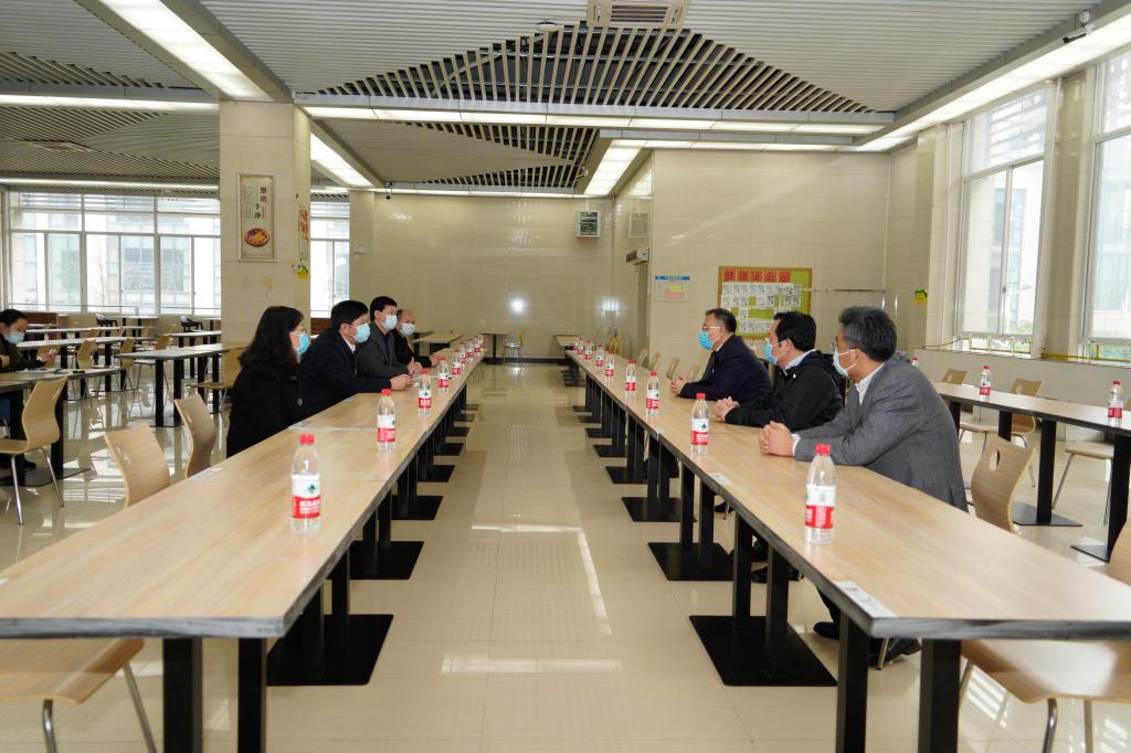 黄俊华一行实地考察了我校隔离医学观察区、学生食堂等重点区域的防控措施落实情况,听取了黄照权就我校疫情防控、开学前准备、线上教学、毕业生就业及当前面临的问题和困难等方面的情况汇报,并详细了解了我校防控物资储备、新学期开学方案和应急预案制定等情况。