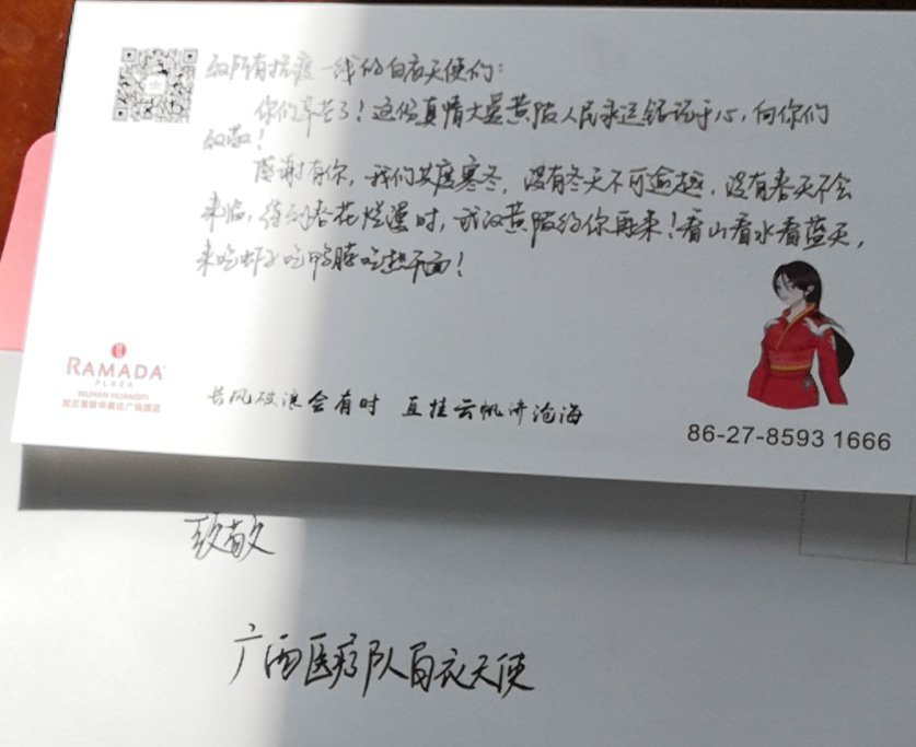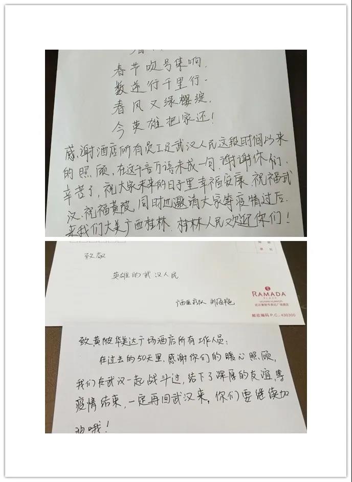 接待广西医疗队的酒店写信致谢广西白衣天使