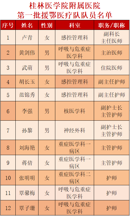 桂医附院首批驰援武汉医疗队的12名英雄分别是谁?