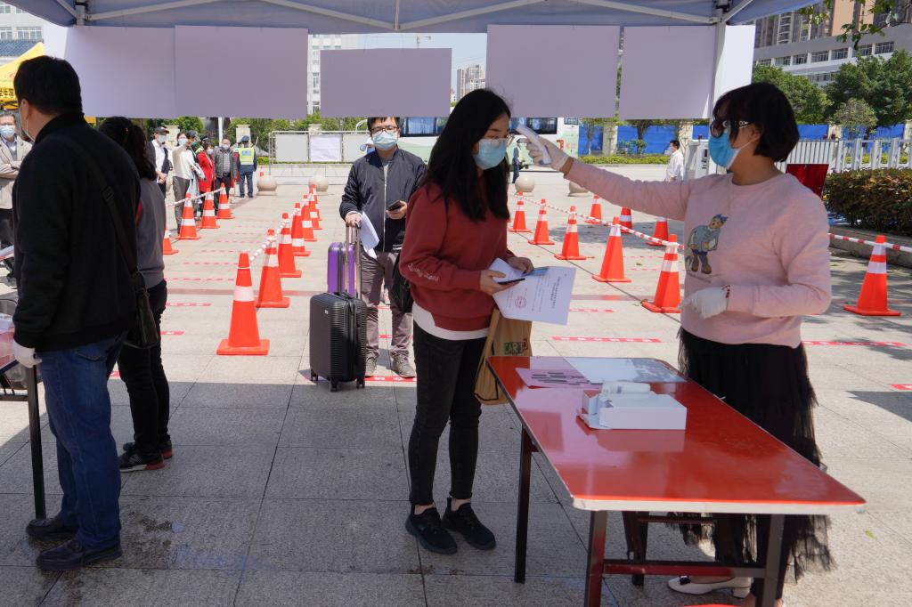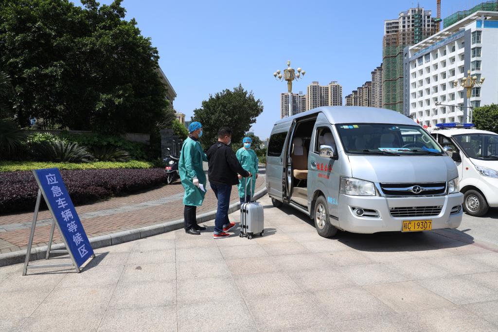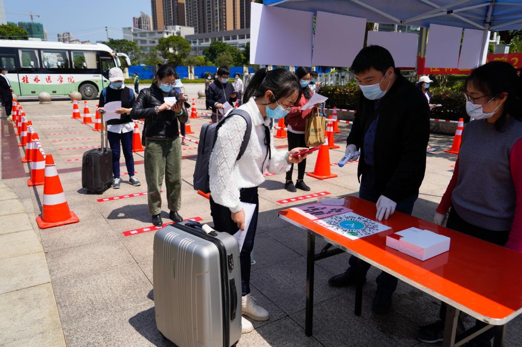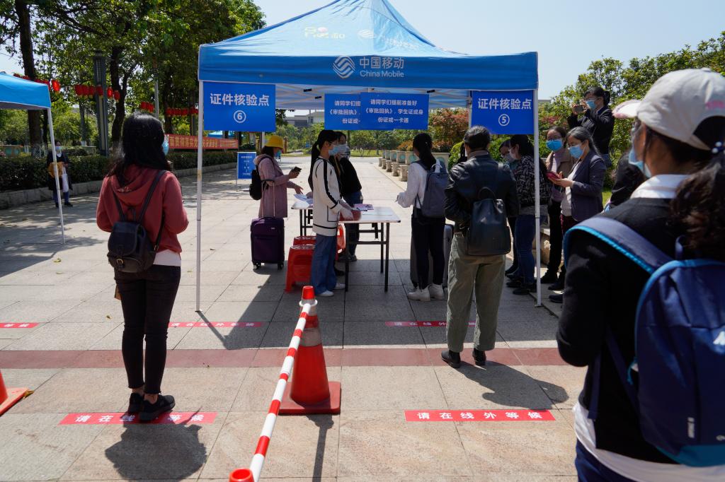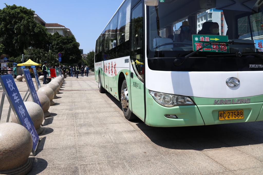 学生返校接待演练和学生发热处置演练学校临桂校区东大门,演练乘坐私家车、校车返校,“正常体温学生”、“证件携带不齐学生”、“体温检测异常学生”、“通道消杀”、“隔离点消杀”等不同情况处置流程。