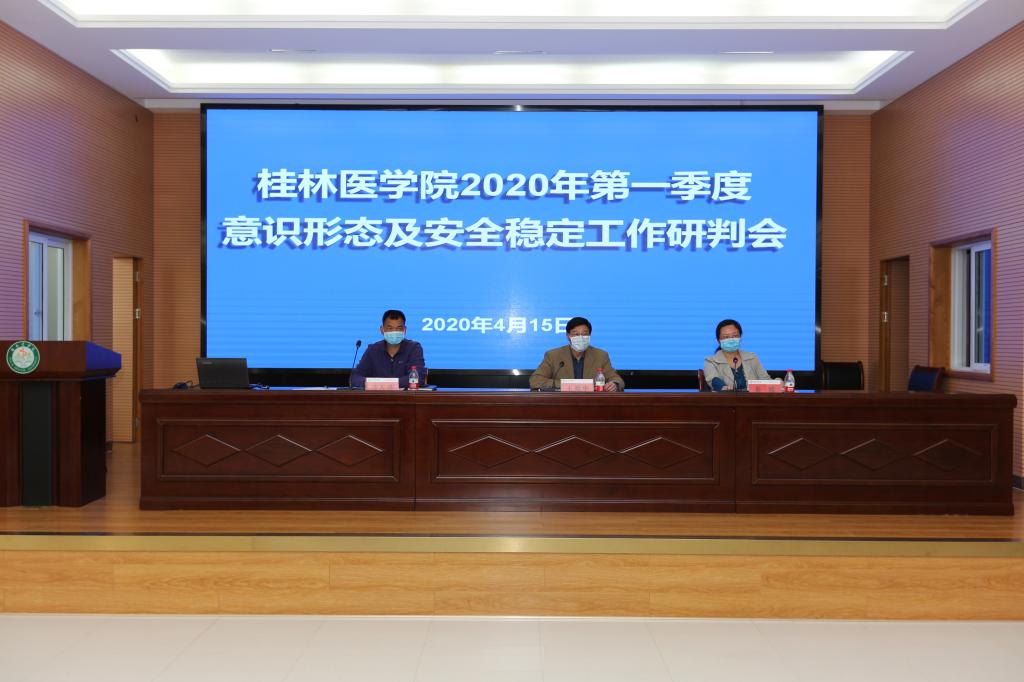 为进一步贯彻落实中央、自治区关于意识形态和安全稳定工作的重要精神,分析研判我校意识形态和安全稳定形势,安排布置下一阶段工作任务,4月15日下午,我校在临桂校区明德楼101室召开2020年第一季度意识形态与安全稳定工作研判会。学校党委副书记王赣华、各二级党委(党总支)书记、学校各单位、各部门党政主要负责人出席会议。
