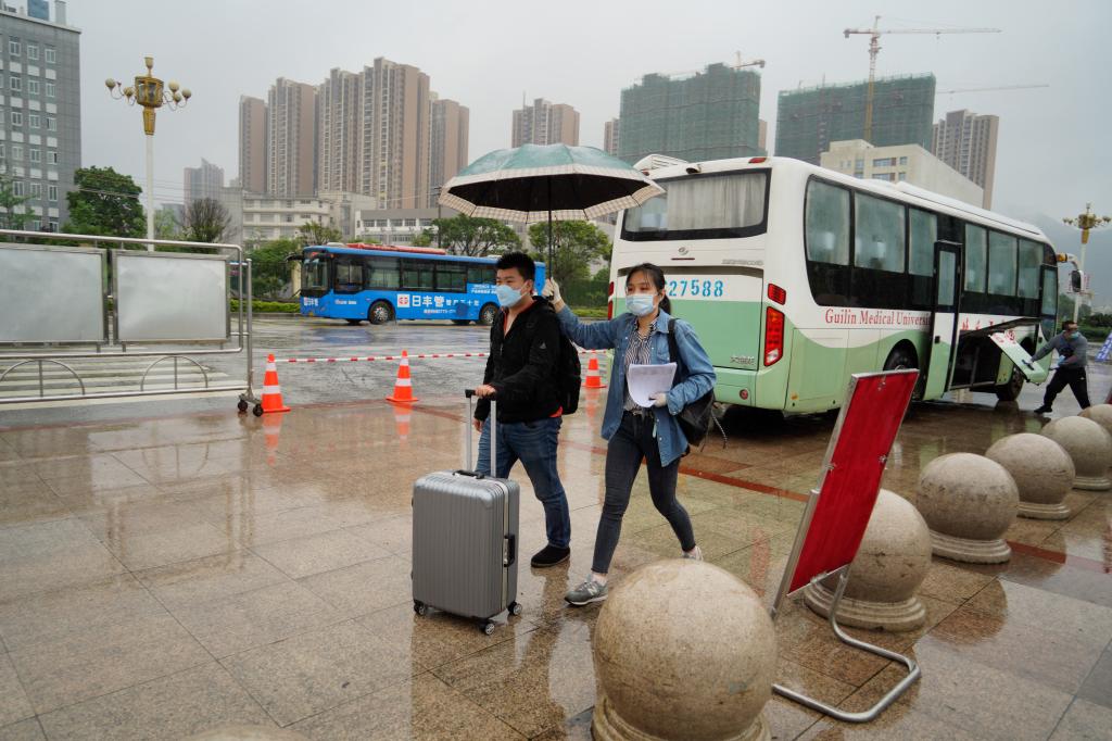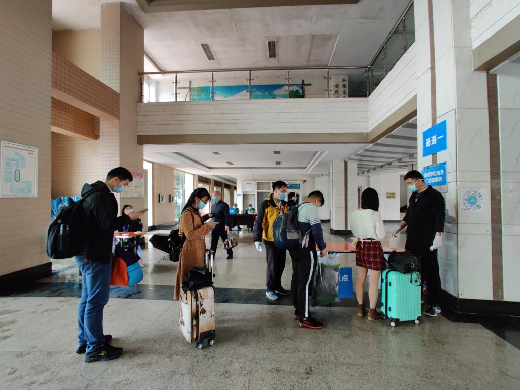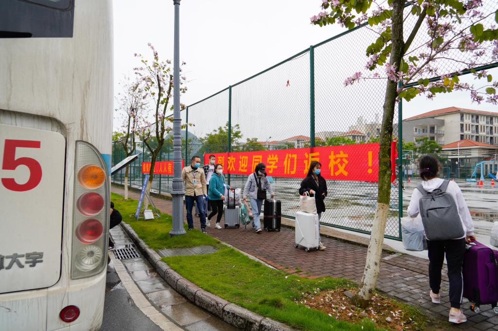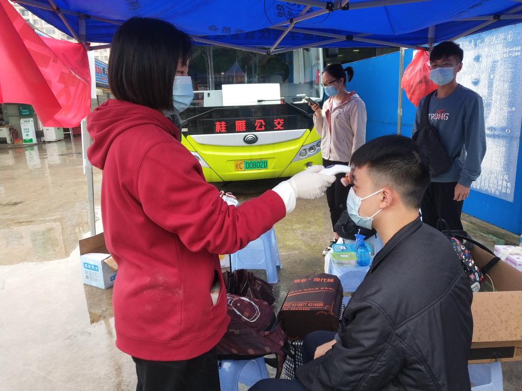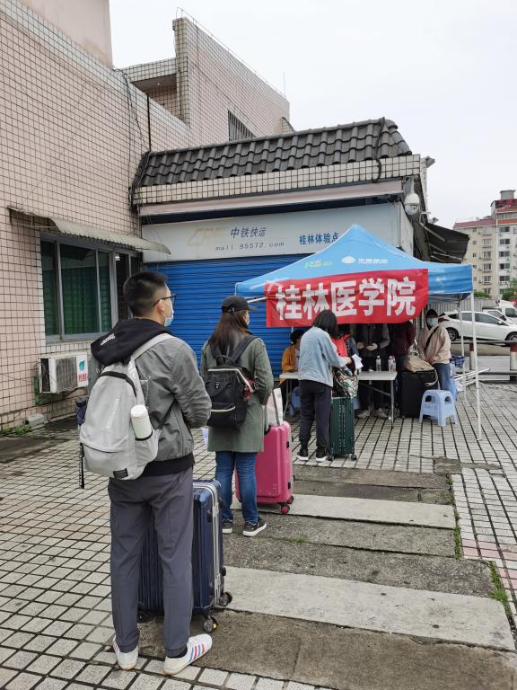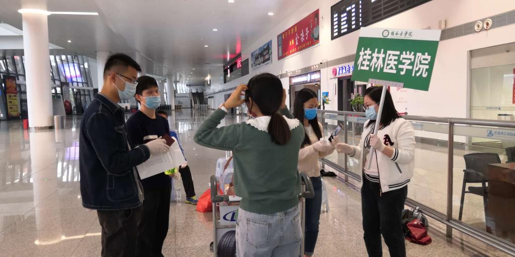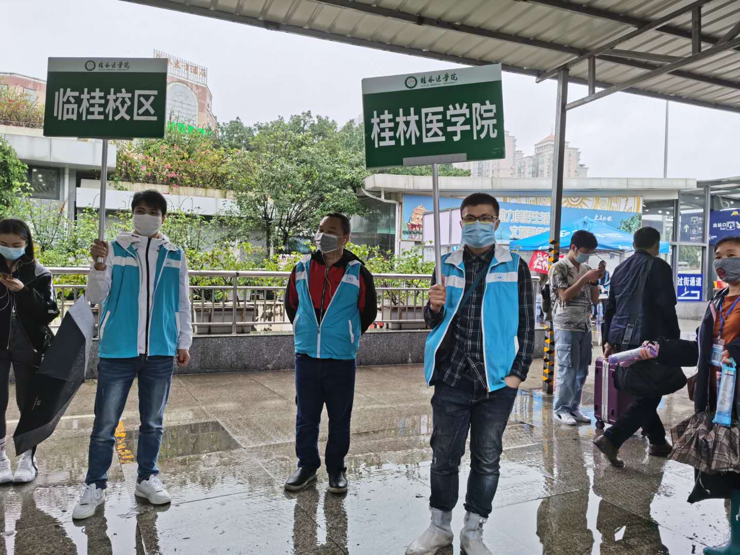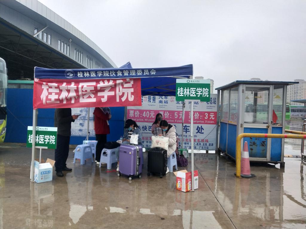 为确保学生安全返校,避免路途中过多接触,学校在桂林站、桂林北站、汽车站、火车站设置接驳点,接送学生返校。