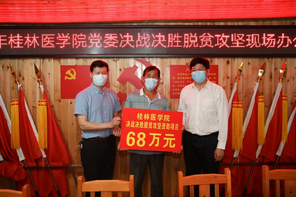 现场办公会结束后,举行了捐赠仪式,学校支持龙胜县对口帮扶贫困村产业帮扶项目68万元。