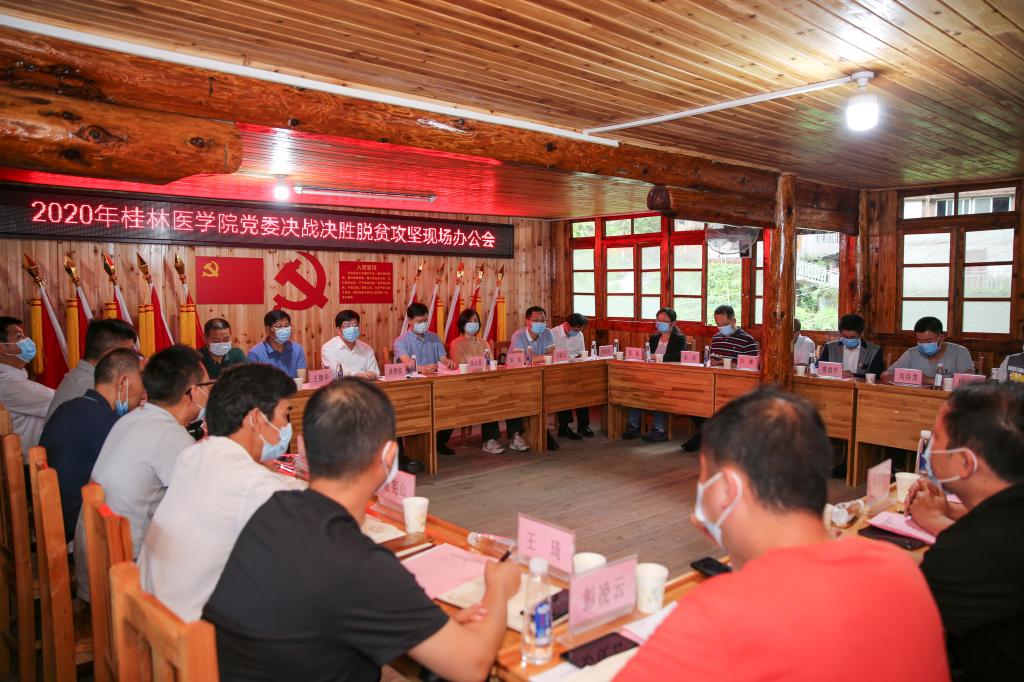 5月20日,我校党委常委冒雨来到龙胜县乐江镇同乐村召开集体现场办公会,现场听取扶贫工作汇报,现场考察帮扶项目建设进展情况,现场解决实际困难和问题,现场研究部署2020年扶贫工作重点任务。校领导黄照权、张志勇、王赣华、陈旭、辛懋、马献力、谢忠文、李清华、周国增,校党委常委秦媛、李海林出席现场办公会。校党办院办、纪委办、扶贫办负责人列席办公会。桂林市人大常委会副主任、龙胜县委书记周卉,龙胜县委常委、党委办主任郑明旺,龙胜县副县长、扶贫工作队队长张小磊应邀参加办公会。学校对口帮扶的龙胜县乐江镇同乐村、西腰村负责人以及全体驻村第一书记和工作队员参加了办公会。会议由校党委书记、校脱贫攻坚(乡村振兴)工作领导小组组长黄照权主持。