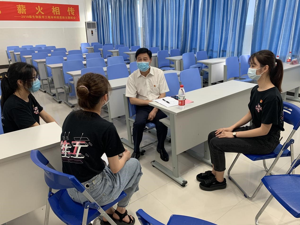 6月5日下午,生物技术学院2018级生物医学工程本科班“榜样有你,薪火相传”思政主题班会在临桂校区生技楼404教室举行。学校党委副书记、班级联系校领导王赣华出席班会,生物技术学院负责人、学工处领导、18生工班主任及生技学工办也参加了本次班会。