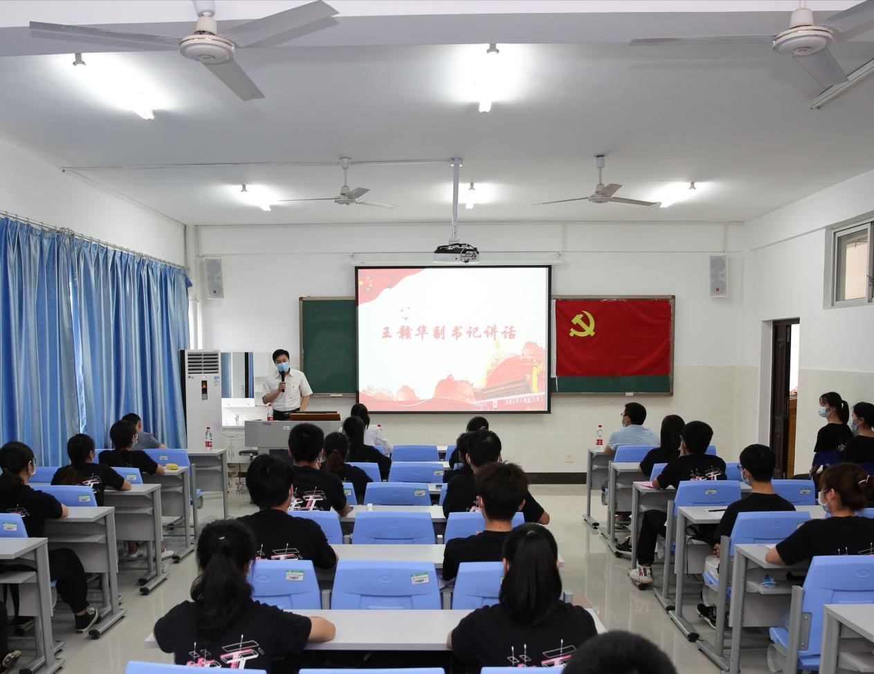 王赣华在班会课上表示,校领导联系班级制度是学校落实立德树人根本任务的有力举措,同学们作为班级的一员,希望能多为班级建设出力。王赣华分享了个人的入党经历和心路历程、对党的深厚感情。他结合中国共产党领导中国人民从站起来、富起来到强起来并走向中华民族伟大复兴的历史功绩,以及当下的国内国际疫情防控和经济社会发展形势热点问题,鼓励同学们要向优秀党员学习,跟党走中国特色社会主义道路,全面成长成才,共同担负起中华民族伟大复兴的历史使命。