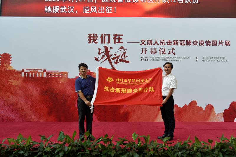 6月12日,由广西壮族自治区文化和旅游厅、桂林市人民政府主办,广西壮族自治区博物馆、桂林博物馆承办的《我们在战疫——文博人抗击新冠肺炎疫情图片展》在桂林博物馆开幕。开幕式上,学校副院长李清华代表桂林医学院向桂林博物馆捐赠了驰援湖北抗疫请战书、医疗队训练防护装备、援鄂证书照片、纪念章照片以及援鄂期间工作照片、视频等珍贵抗疫见证实物,桂林博物馆向我校颁发了收藏证书。