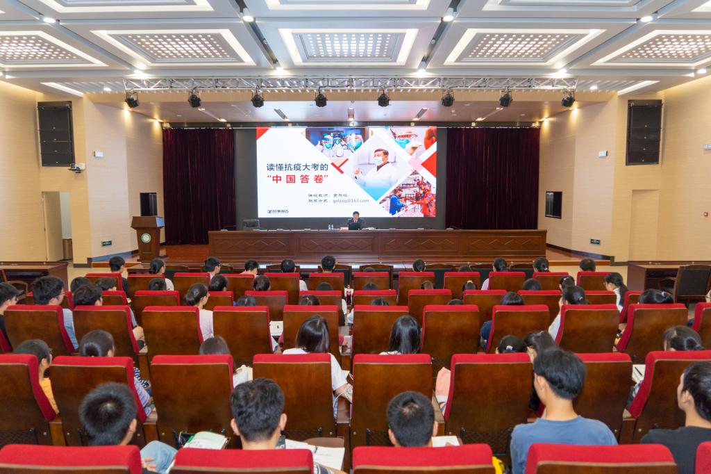 在讲授《读懂抗疫大考的“中国答卷”》专题时,黄照权指出,在抗击新冠肺炎这场无硝烟的斗争中,以习近平同志为核心的党中央带领人民向历史交出了一份满意的“答卷”,这张“中国答卷”,彰显了以习近平同志为核心的党中央的坚强领导,显示了中国特色社会主义制度的显著优势,检验了我国治理体系和治理能力的效能水平,书写了中国践行人类命运共同体理念的大国担当。他要求同学们要在大局中把握方向,练就扎实的专业本领,勇担使命,只争朝夕,不负韶华。