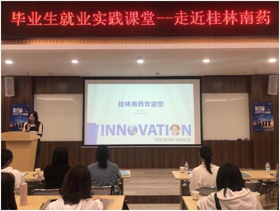 本次活动分为参观南药制药车间和企业宣讲两个步骤。通过参观文化展厅和制药车间,了解南药公司的发展历程,感受到了企业的历史和优质文化。在企业宣讲活动中,桂林人才网公共事务中心总监冯英表示,希望就业实践课堂能帮助同学们更早地接触企业、感受企业文化,为同学们的职业规划增添色彩;桂林南药有限公司副总裁兼党委副书记秦运琳介绍了桂林南药的发展及企业人才培养计划,鼓励毕业生走进南药,成为南药的一份子。在最后的现场交流环节,毕业生们提出了自己对于岗位、就业、薪资等方面的问题,HR经理刘春桃耐心解答,同时也表示能有更多的机会与毕业生以及在校生交流。