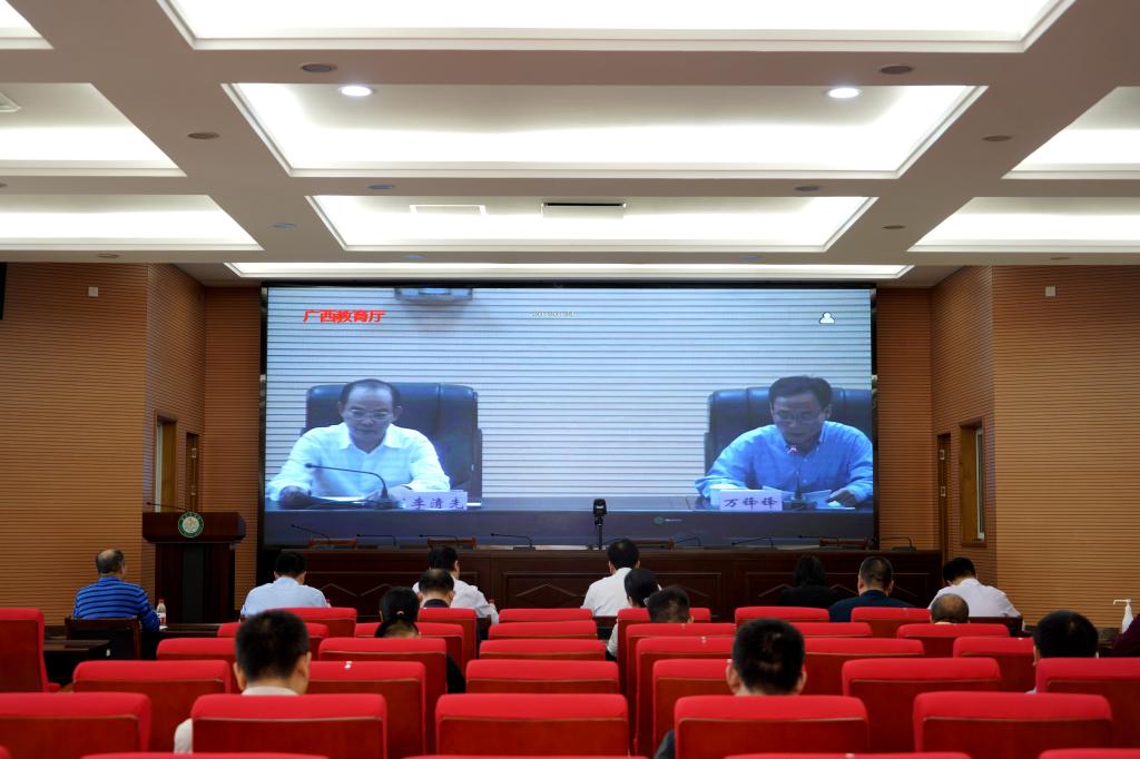 会上,桂林航天工业学院、南宁市教育局负责人分别就推进学校疫情防控工作作经验交流发言。