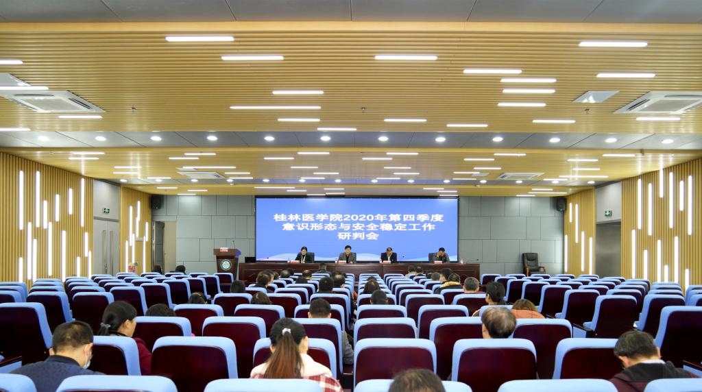 为进一步加强和改进学校的意识形态工作,分析研判我校意识形态和安全稳定形势,安排布置下一阶段工作任务,11月27日上午,我校在临桂校区科学实验中心学术报告厅召开2020年第四季度意识形态与安全稳定工作研判会。学校党委副书记王赣华、副院长辛懋、各二级党委(党总支)书记、学校各单位、各部门党政主要负责人出席会议。会议由学校副院长辛懋主持。