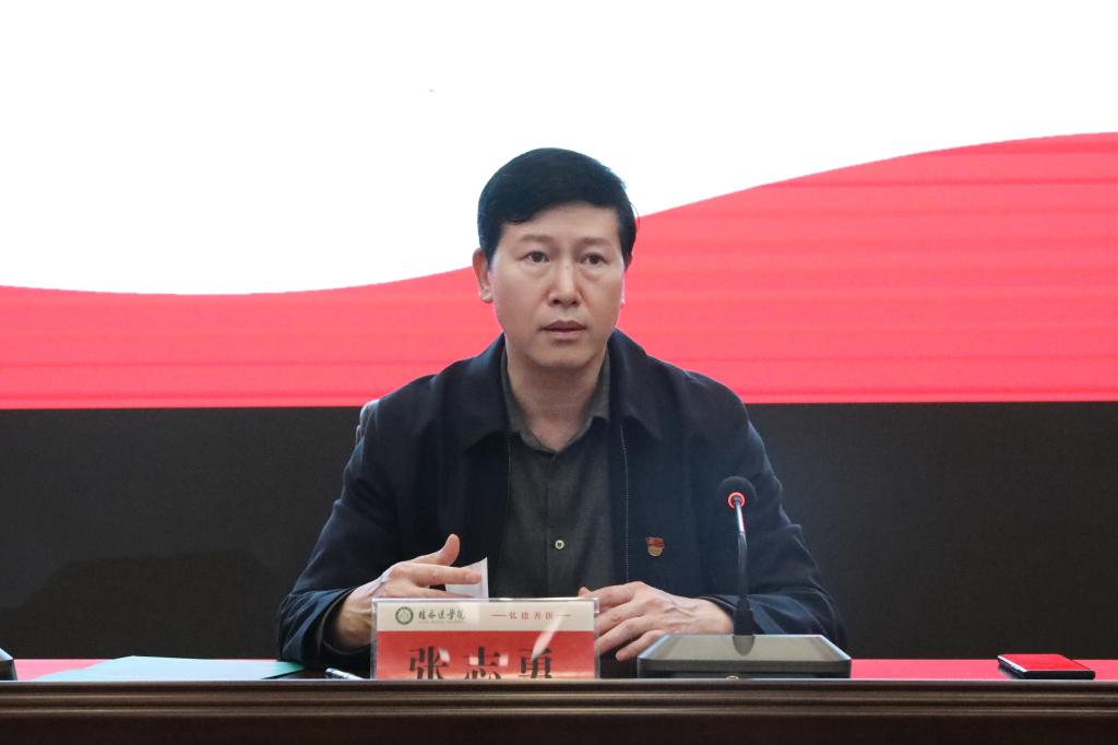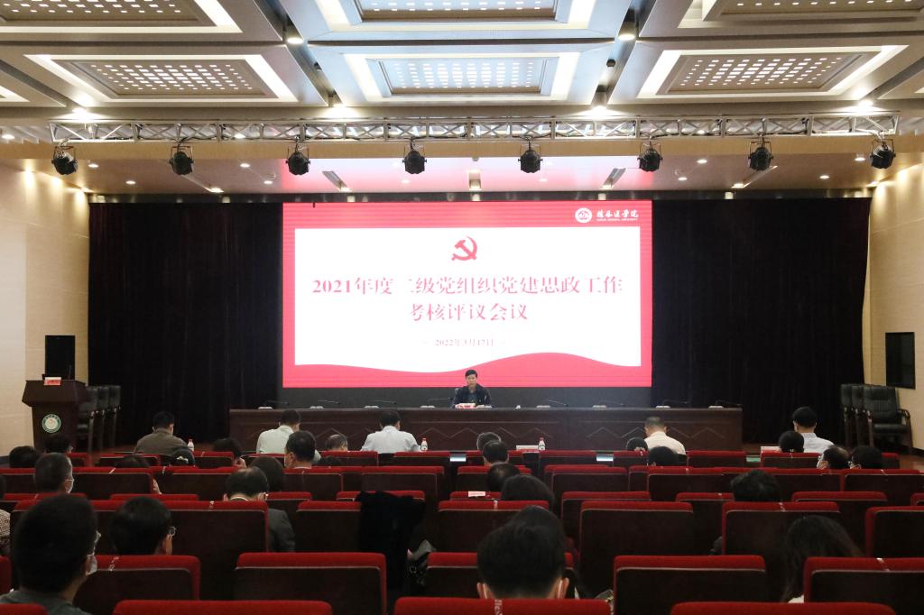 3月17日下午,我校在临桂校区教学北楼多功能报告厅召开2021年度二级党组织党建思政工作考核评议会议。校党委书记、院长张志勇主持会议并讲话。校党政领导班子成员、党委各职能部门负责人,各二级党组织书记和二级学院行政负责人、党员代表和党外代表人士参加会议。