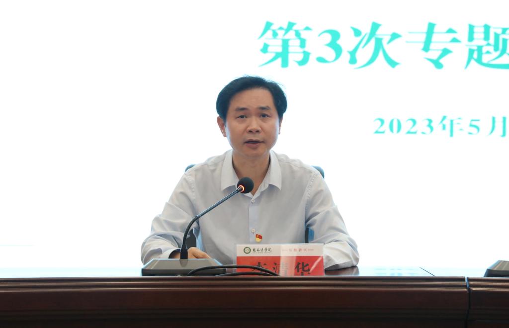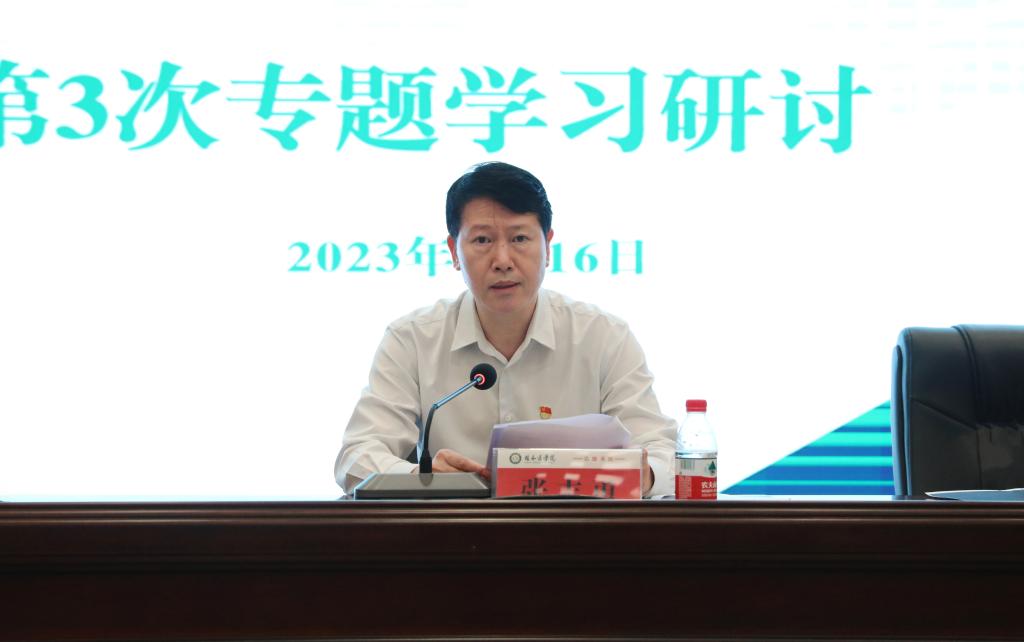 教务处、科技处、公共卫生学院、药学院、智能医学与生物技术学院等5个部门负责人围绕学校“十四五”规划有关人才培养和新医科建设的目标任务和工作实际,就如何加快医学教育创新发展,提升教师教学能力和医学人才培养质量分别作集中专题研讨交流发言,既谈了自身学习体会,也提出了下一步工作思考。