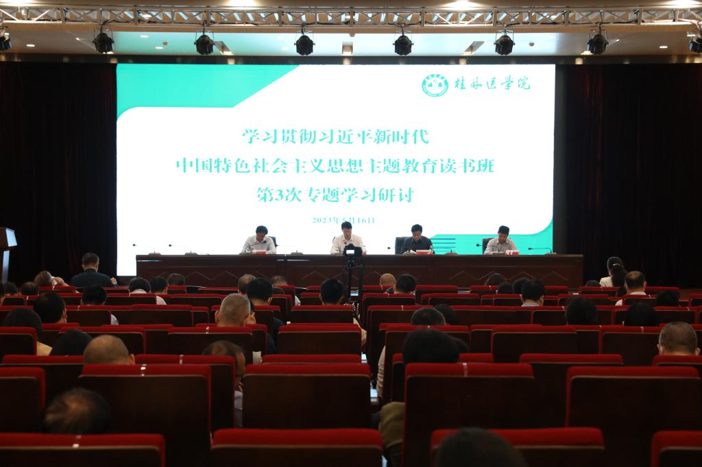 5月16日,我校举行学习贯彻习近平新时代中国特色社会主义思想主题教育读书班第3次专题学习研讨。当天上午,在家校领导张志勇、王赣华、李清华、周国增,全体中层干部在临桂校区教学北楼多功能报告厅召开读书班集中学习研讨会,会议的主题是:深入学习习近平总书记关于教育的重要论述,深入贯彻教育、科技、人才工作“三位一体”战略,加快医学教育创新发展,提升医学人才培养质量。学校党委书记、院长、党委主题教育领导小组组长张志勇主持会议并讲话。会上还集体学习观看了专题辅导视频《推进教育、科技、人才深度融合》。