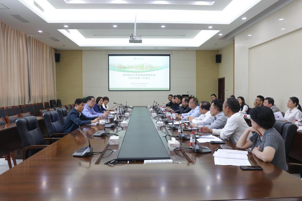 4月15日,桂林医科大学医院管理委员会召开2025年度第一次会议。学校党委书记马献力、校长曾小云、总会计师周国增及全体医院管理委员会委员出席会议,会议由校长助理莫碧文主持。