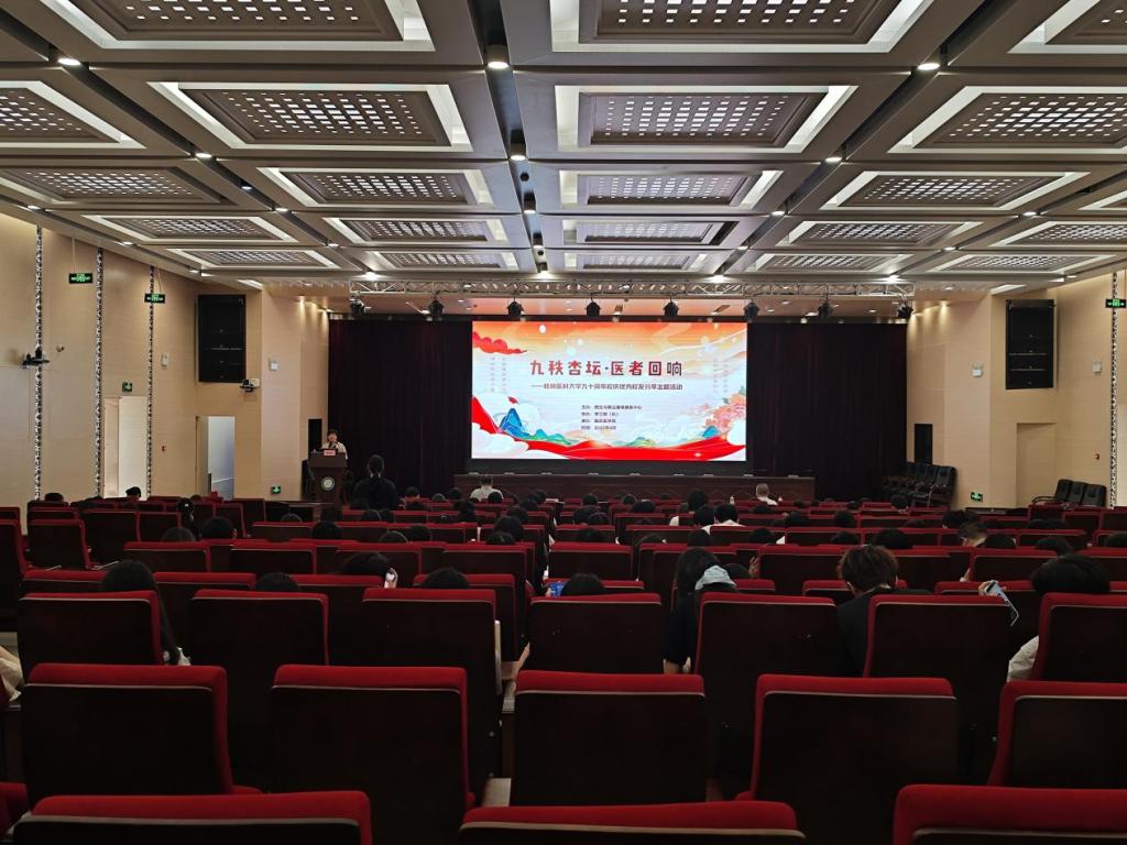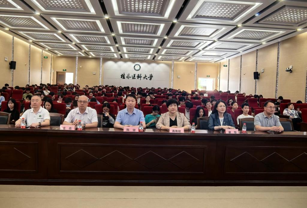 4月16日下午,“九秩杏坛·医者回响”——桂林医科大学九十周年校庆优秀校友回校分享职业发展主题活动在临桂校区教学北楼多功能报告厅举行。我校1994级临床医学专业毕业生,全州县人民医院党委书记、院长蒋艳姣受邀回母校分享职业发展历程。学校副校长陈健,招生与就业指导服务中心、学生工作部(处)、临床医学院等相关部门负责人及300余名师生参加活动。