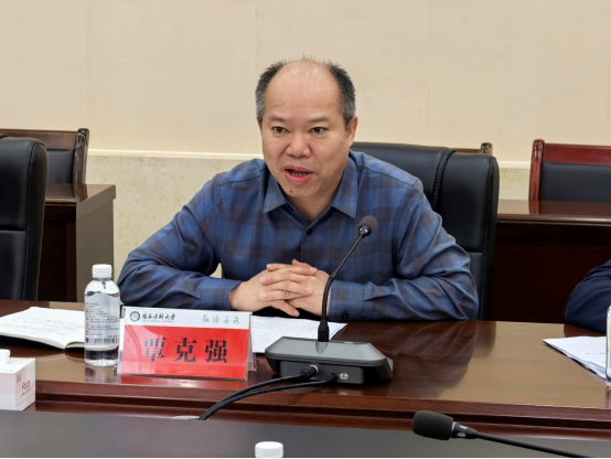 覃克强对黄江元一行表示热烈欢迎,他详细介绍了学校近几年来大学生征兵工作开展情况,重点就2024年年度征兵工作情况和2025年秋季征兵计划进行了详细介绍。他表示,下一步学校将继续加强征兵工作组织领导,完善征兵工作机构设置,深化宣传发动,贯彻大学生征兵优待政策,落实经费保障,增进服务保障,确保完成大学毕业生选送工作。