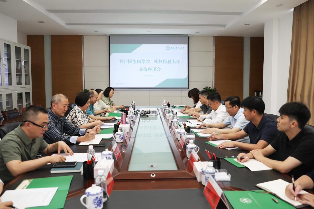 5月7日下午,右江民族医学院校长黄龙坚、副校长谭盛葵率团到访,就科研工作改革、基础设施建设等工作开展调研交流。我校校长曾小云、副校长覃克强,科技处、党办校办、后勤基建处、财务处等部门负责人和有关同志参加座谈。会议由覃克强主持。